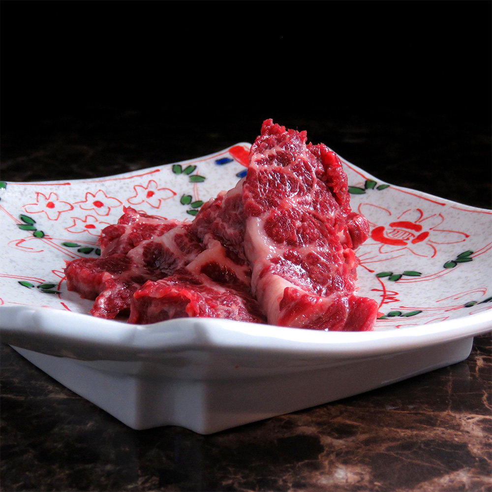 お店でシャリシャリの薄い馬刺しを食べた経験はございませんか?馬刺しは法律で冷凍が義務付けられています。ですので、ほとんどの店が注文が入ってから流水解凍やレンジで急速解凍します。これには理由があり、単価が高い馬刺しは出数が少ないので事前に解凍するとロスがでるからです。ただ急速解凍するともちろん旨みが抜けおいしくありません。馬刺しの本場熊本でもこれが実情です。当店はランチ、ディナー共に沢山の県外、海外のお客様に来店いただけておりますので、常に前日に翌日分の馬刺しを冷蔵庫にてゆっくり時間をかけて解凍します。これにより旨みが逃げにくく厚切りの馬刺しを提供できます。